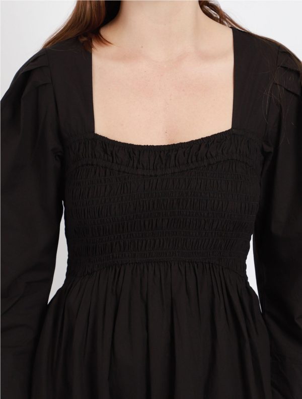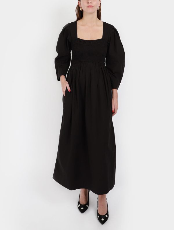 Cotton Poplin Open-neck Smock Long Dress from Loosebuttonshirt.