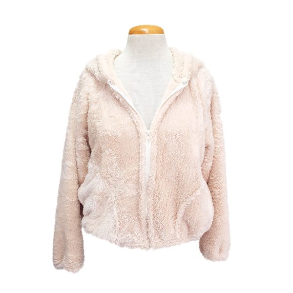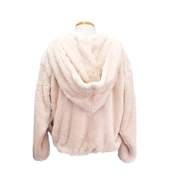This comfy winter jacket is styled as a bomber in a fluffy melon with patch pockets, an oversized hoodie and a zip. These are lovely to relax and snuggle up in at home as well as keep warm on a chilly night.